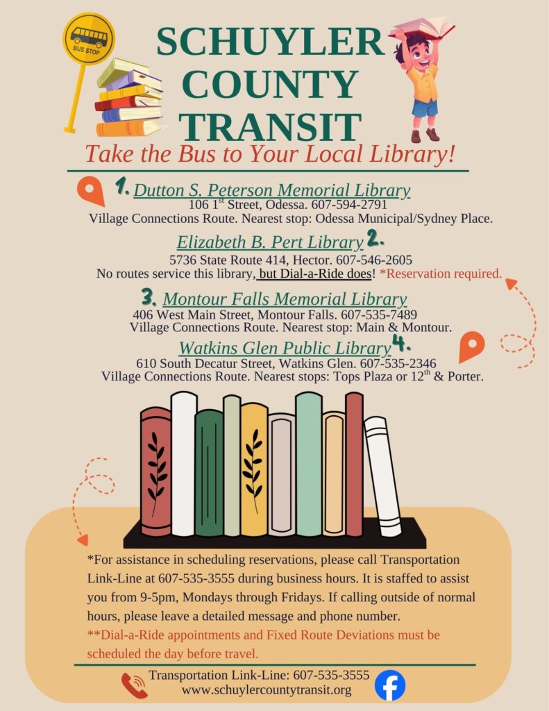 ***During the winter months, if the Watkins Glen School District closes due to weather, the library will also close.